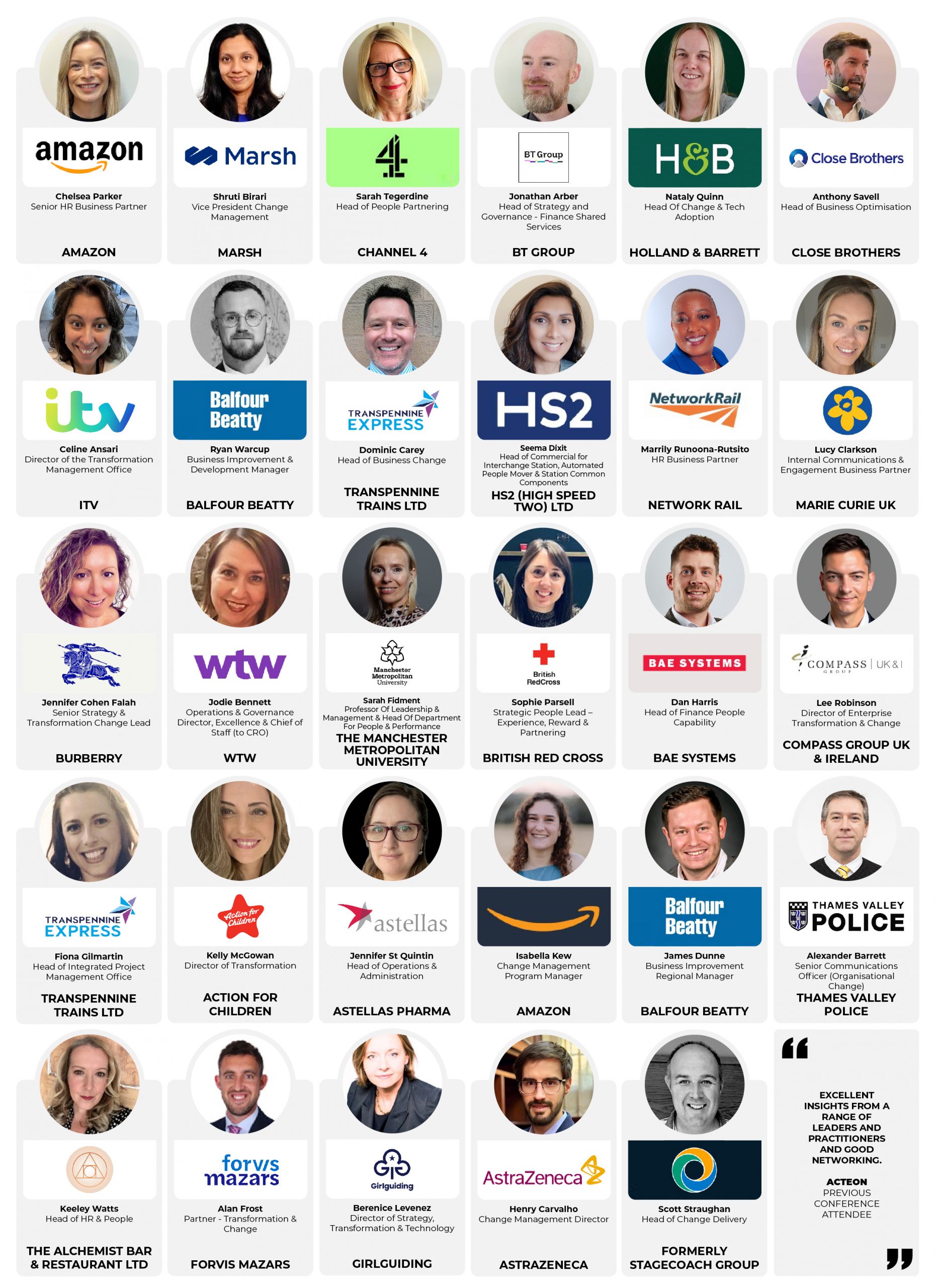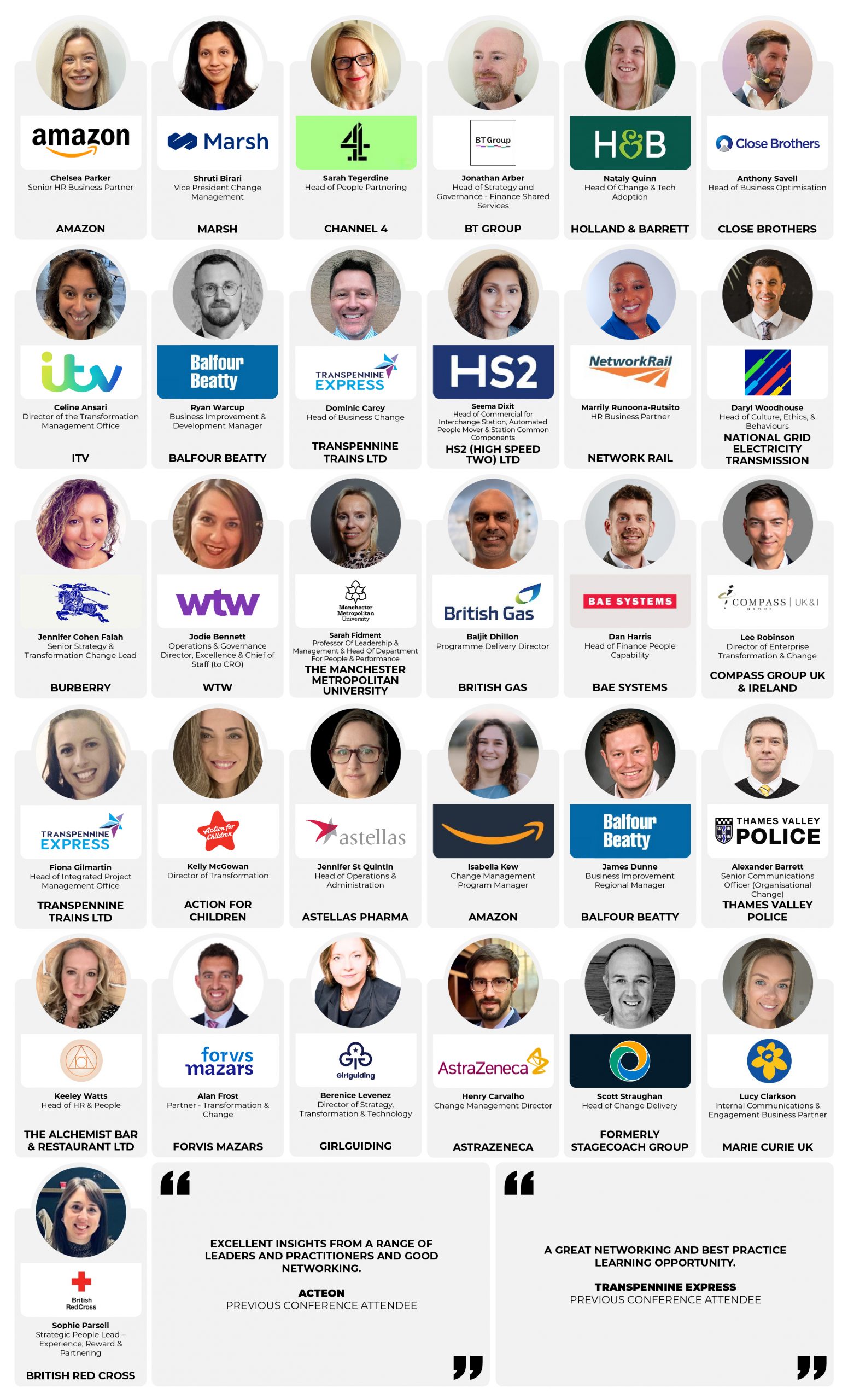 - Top UK brands speaking, including Amazon, Channel 4, AstraZeneca, Holland & Barrett, River Island, Stagecoach, TransPennine Trains and many more